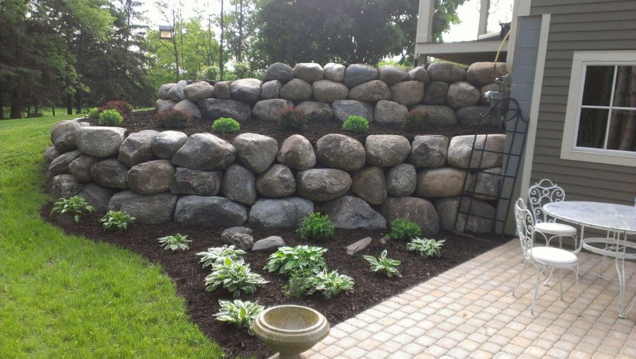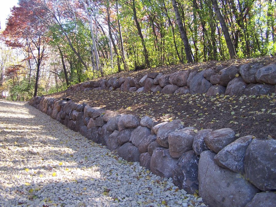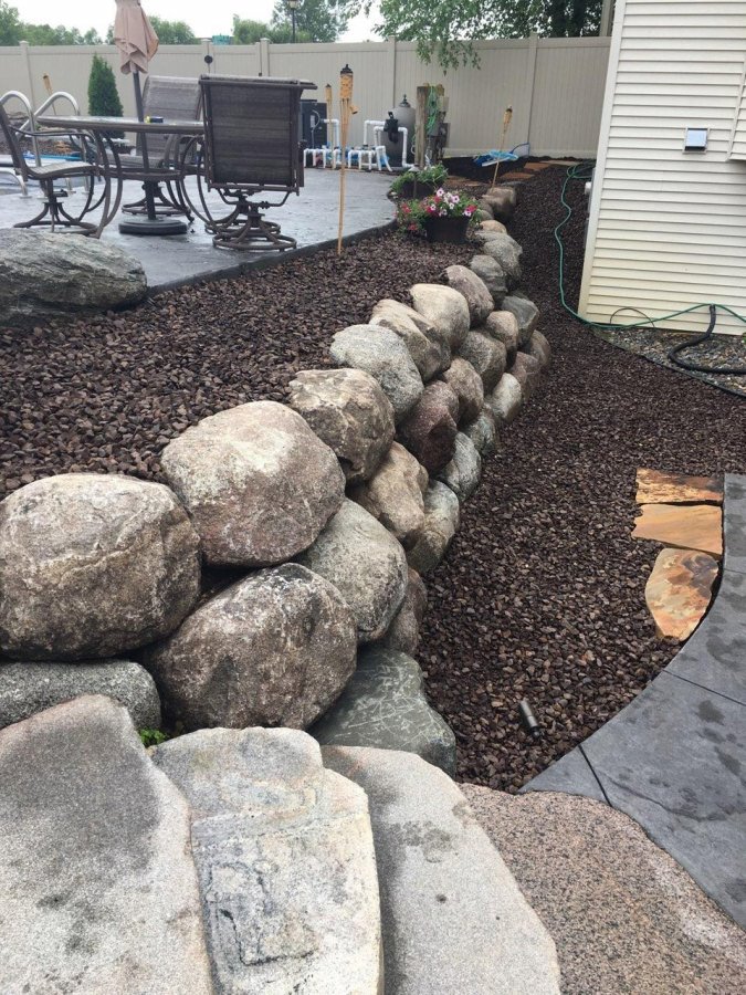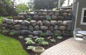 Retaining walls serve as a decorative way to carve out extra yard space, limit soil erosion, help with flooding, and even prevent water damage to other structures. When it comes to retaining walls, our specialty is in using fieldstone boulders. Boulder retaining walls are one of the most natural, long-lasting, and least expensive retaining walls to construct. Why… because there is no labor invested in making the product; fieldstone boulders are a material that is naturally abundant in Minnesota. These types of boulders have been around for many, many years, and will be around for many more.